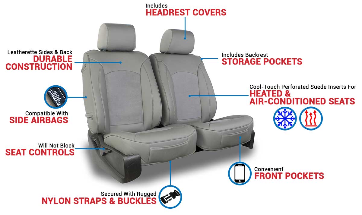 - Cover consists of 2 solid sections, one for seat bottom and one for backrest portion; 3 headrest covers included