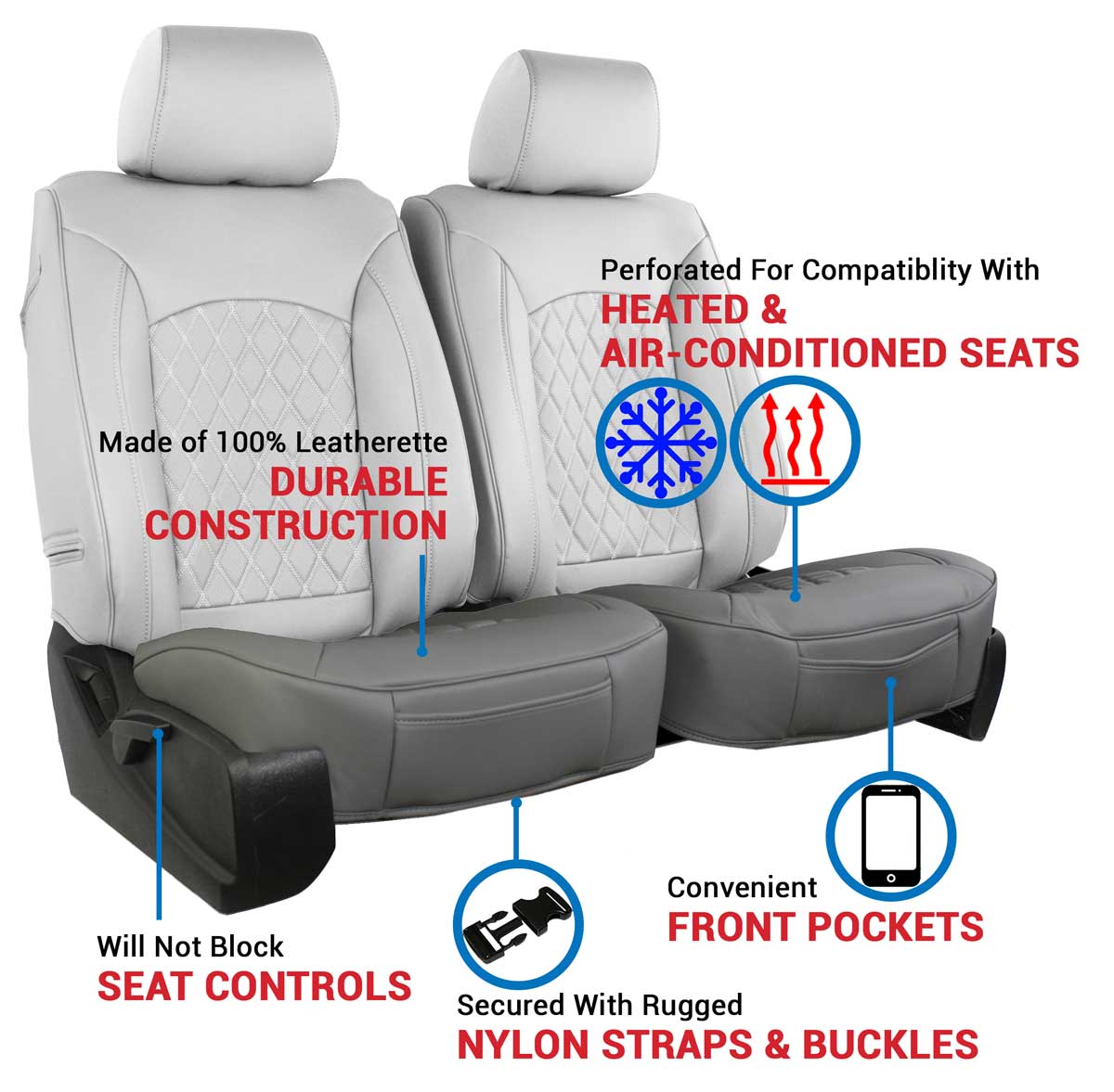 - Micro-perforated center inserts for compatibility with heated and air-conditioned seats