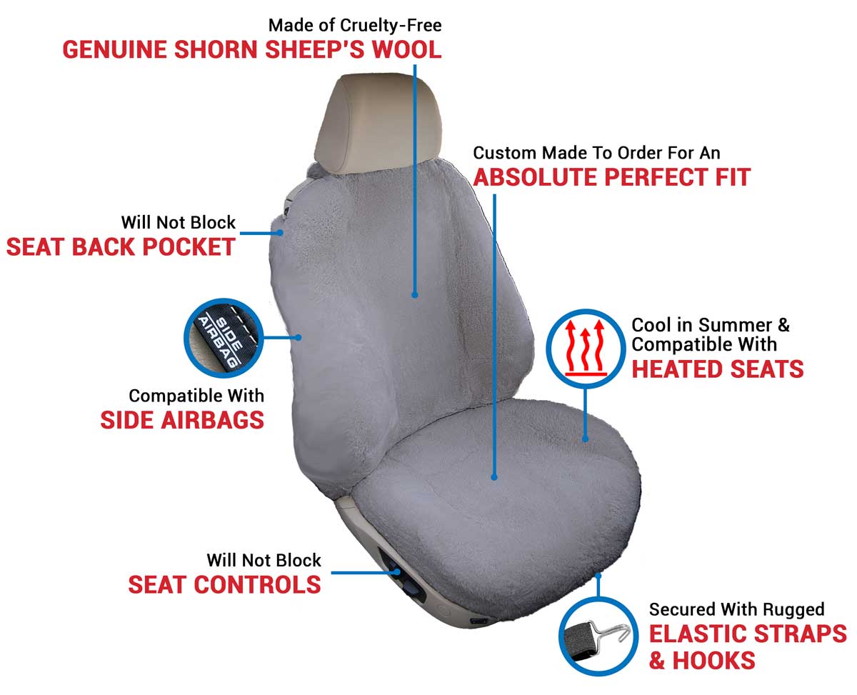 Discerning drivers deserve the best. Tailor-made by hand in our factory to fit every contour of your vehicle's seats with absolute precision. Super-plush fleece covers the entire seat surface, including the sides and upper back portion of the seat back, while our exclusive strapping system ensures years of driving comfort. The result is a masterpiece of unbelievable luxury.