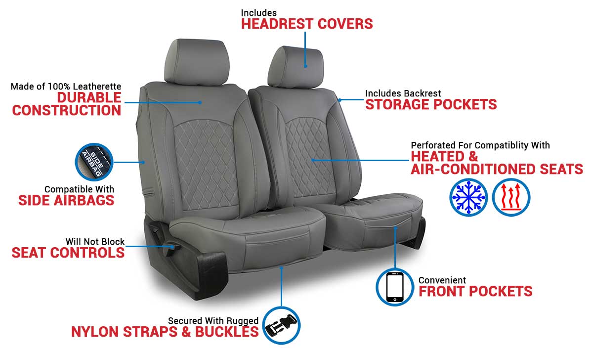 - Cover consists of 2 solid sections, one for seat bottom and one for backrest portion; 3 headrest covers included