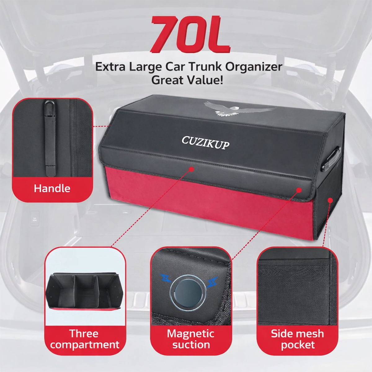 A cluttered trunk can turn simple errands into frustrating chaos — rolling groceries, misplaced tools, and wasted space every time you open the back. Our 2025 Upgraded PU Leather Trunk Organizer transforms your cargo area into a clean, structured, and stress-free storage space with premium materials and smart compartment design.