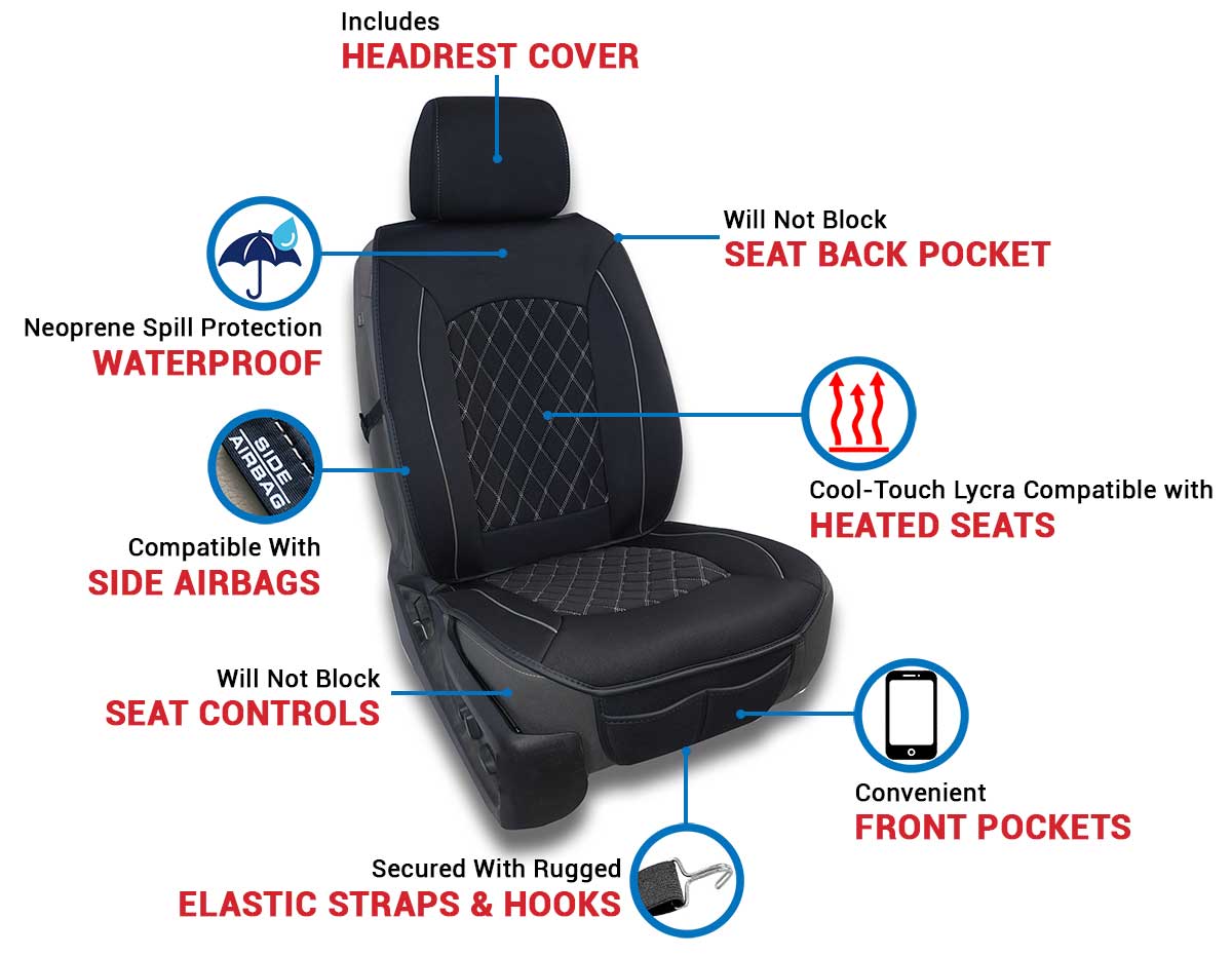 The waterproof EasyFit Neoprene provides unparalleled seat protection from sweat, dirt and sand for those who enjoy an active lifestyle (swimming, hiking, going to gym, surfing, etc). Extremely practical and installs in minutes, perfect for cars, trucks, vans, and SUVs.